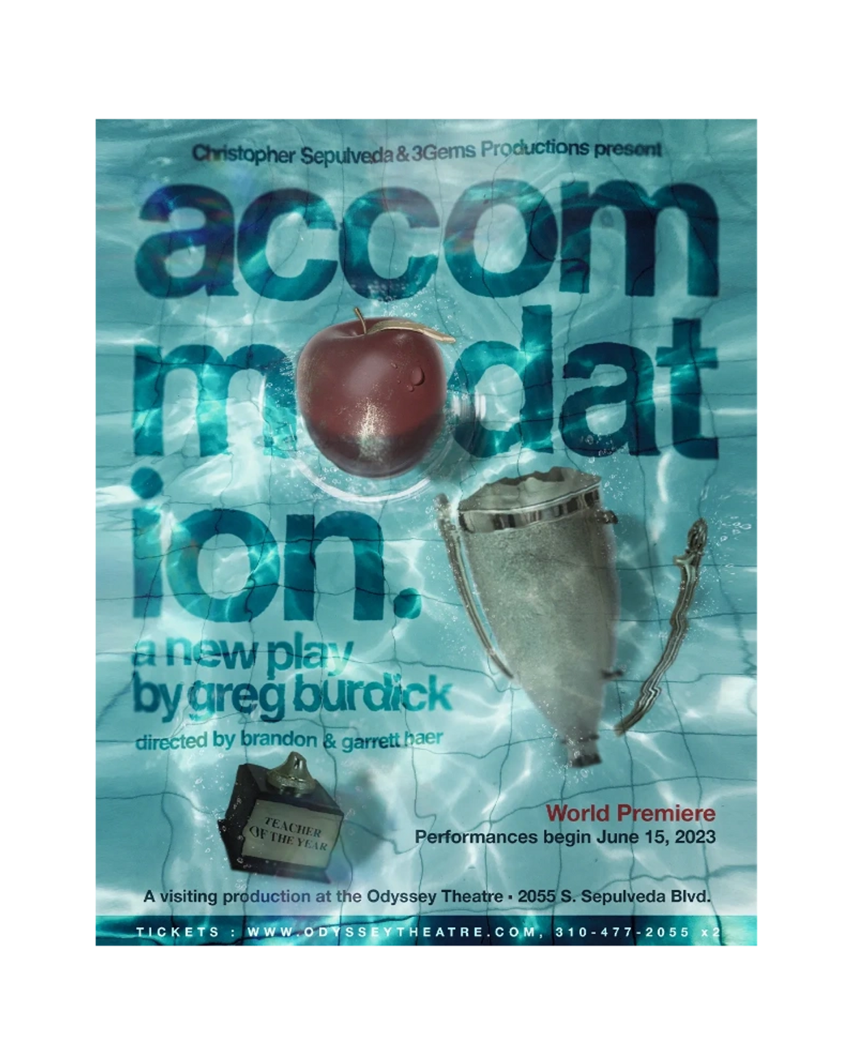 Christopher Sepulveda & 3Gems Productions will present ACCOMMODATION, a New Play by Greg Burdick at the Odyssey Theatre in West Los Angeles,...